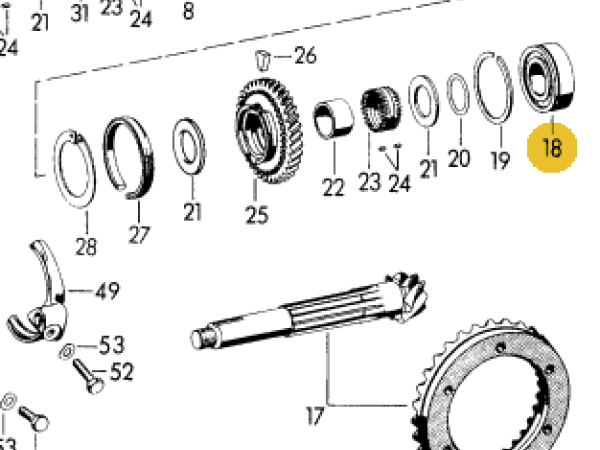 Bearing Pinion shaft 519 gearbox. For the split case gearbox with Porsche gears Pre-A -55 and 356A t1 till end 56 with the splitcase gearbox. Number 18 on the PET drawing.